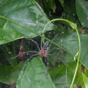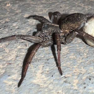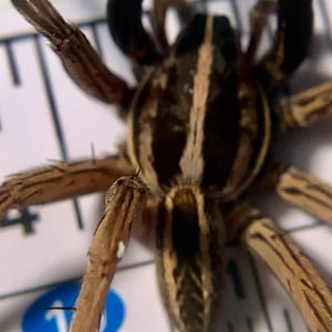 The many genera of wolf spiders range in body size (legs not included) from less than 0.4 to 1.38 in. They have eight eyes arranged in three rows. The bottom row consists of four small eyes, the middle row has two very large eyes (which distinguishes them from the Pisauridae), and the top row has two medium-sized eyes. Unlike most other arachnids, which are generally blind or have poor vision, wolf spiders have excellent eyesight. The tapetum lucidum is a retroreflective tissue found in eyes. This reflective tissue is only found in the four larger eyes ("secondary eyes") of the wolf spider. Flashing a beam of light over the spider produces eyeshine; this eyeshine can be seen when the lighting source is roughly coaxial with the viewer or sensor. The light from the light source (e.g., a flashlight or sunlight) has been reflected from the spider's eyes directly back toward its source, producing a "glow" that is easily noticed. Wolf spiders possess the third-best eyesight of all spider groups, bettered by jumping spiders of the family Salticidae (which can distinguish colors) and the huntsman spiders. Wolf spiders are unique in the way that they carry their eggs. The egg sac, a round, silken globe, is attached to the spinnerets at the end of the abdomen, allowing the spider to carry her unhatched young with her. The abdomen must be held in a raised position to keep the egg case from dragging on the ground. Despite this handicap, they are still capable of hunting. Another aspect unique to wolf spiders is their method of care of young. Immediately after the spiderlings emerge from their protective silken case, they clamber up their mother's legs and crowd onto the dorsal side of her abdomen. The mother carries the spiderlings for several weeks before they are large enough to disperse and fend for themselves. No other spiders are currently known to carry their young on their backs for any period of time. Because they depend on camouflage for protection, they do not have the flashy appearance of some other kinds of spiders. In general, their coloration is appropriate to their favorite habitat. Hogna is the genus with the largest of the wolf spiders. Among the Hogna species in the U.S., the nearly solid dark brown H. carolinensis (Carolina wolf spider) is the largest, with a body that can be more than 2.5 cm long. It is sometimes confused with H. helluo, which is somewhat smaller and different in coloration. The underside of H. carolinensis is solid black, but the underside of H. helluo is variegated and has reds, oranges, and yellows with shades of black. Some members of the Lycosidae, such as H. carolinensis, make deep, tubular burrows in which they lurk much of the time. Others, such as H. helluo, seek shelter under rocks and other shelters as nature may provide. As with spiders in general, males of almost any species can sometimes be found inside homes and buildings as they wander in search for females during the autumn. Wolf spiders play an important role in natural population control of insects and are often considered "beneficial bugs" due to their predation of pest species within farms and gardens.