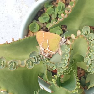 The general process for a typical courtship interaction begins when a female flies near a perching male, who is most likely perched on the typical host plant of Echeveria gibbiflora. After the female passes by, the male flies around and follows the female and a courtship flight dance in the air begins; at some point in this courtship flight, which lasts approximately 30 seconds, the male flies closely behind and slightly above the simultaneously flying female butterfly. Together, the male and female perch closely together on a plant, most likely the host plant Echeveria, and the male butterfly assumes a position in front of the female with their heads facing each other. In terms of motion, the male continuously and aggressively flutters his wings while the female remains still with her wings closed. Eventually, the male butterfly moves into a position right next to the female, with the heads and tails of both butterflies aligned, and makes genital contact with the female. After copulation ends, which may last several hours, the male may return to perch on the plant whereas the female may leave the area, thus ending this cycle of the courtship process.