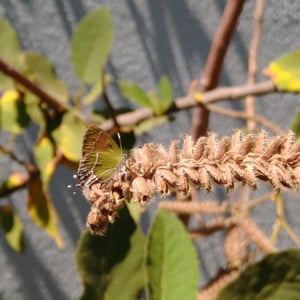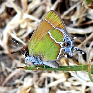 Callophrys xami, commonly referred to as the xami hairstreak or green hairstreak, is a butterfly included in the subgenus Xamia and the genus Callophrys in the family Lycaenidae. It was described by Tryon Reakirt in 1867. Other common names for this species, depending on the region, include green hairstreak and elfin. C. xami is considered to be a very rare species of butterfly, and its typical range is in southern Arizona and Texas including down south to Guatemala. The juniper hairstreak and the silver-banded hairstreak butterflies are similar species, but both differ significantly from C. xami in regards to the postmedian white line running across the butterfly wings.