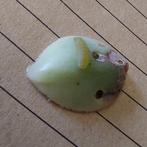 In form and appearance, the pupae are not recognizably uniform or homogenous, but rather can vary in both coloring and physical size. In some cases, rough estimates put an individual pupa roughly between 9 and 11 mm in diameter. In color, the pupae can range between shades of brown, from light to dark, as well as reddish brown and even black. Spotting, usually dark brown in color, may or may not be seen on some parts of the body during pupation. Another characteristic feature of this stage is the presence of two small pale brown spines at the tip of the abdomen.
