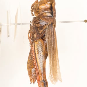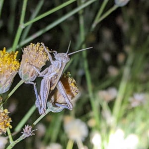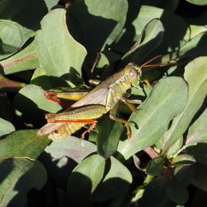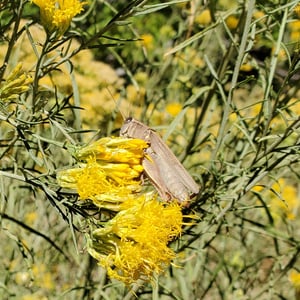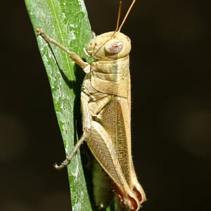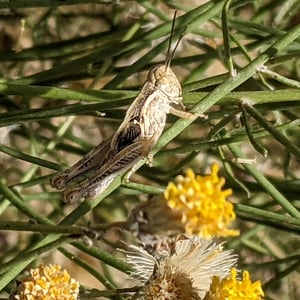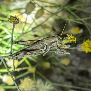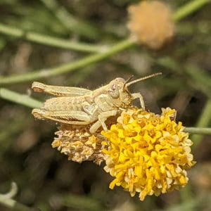 Melanoplus yarrowii, commonly known as Yarrow's grasshopper, is a species of grasshopper found in North America. It is characterized by its medium-sized body, ranging from 1.5 to 2 inches in length, and its distinct coloration, with a dark brown or black body and yellow or orange markings. Yarrow's grasshopper is primarily herbivorous, feeding on a variety of grasses and plants in its habitat.