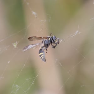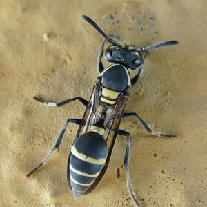 When building the nest, discrete division of labor occurs in the larger colonies and a more fluctuating division happens in smaller colonies. For larger colonies, all workers have a designated job. While each worker does its own job, it cooperates to form a cohesive, productive, and efficient unit. The jobs are water foragers, wood-pulp foragers, and builders. Water foragers gather water droplets from surrounding crops and give them to the pulp foragers and the builders. Wood-pulp foragers gather wood pulp from nearby fiber sources. Using the water received from the water foragers, the pulp foragers give the moist pulp to the builders. Builders receive the water and then the pulp. They use the water to moisten the pulp, and then they work this new mixture into the nest to create a stronger wall for the combs and the envelopes. After receiving the wood pulp from the pulp foragers, a builder divides that amount among other builders until she has the proper amount of wood-pulp she can work with. Also, in higher-populated colonies, the cost is minimized in time delay because so many wasps are doing the jobs and rotating in foraging and supplying the builders. This saves energy and time because each forager is making fewer trips to gather resources. Because the foragers take fewer trips outside of the nest, the risk of predation in larger colonies is reduced. In a small colony, the workers are more likely to rotate roles. This causes more expended energy and more time delays due to the workers’ constant need to make trips outside of the nest to gather resources. These costs affect the nest building.