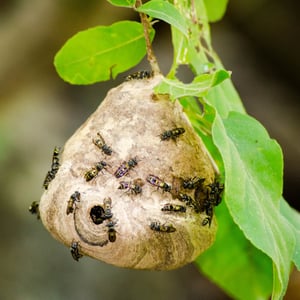 Usually, predation occurs away from the nest. Mantises and robber flies prey on foragers who are trying to gather resources. Because there is less defense away from the nest, foragers are more likely to be prey for these predators. Also, nests are attacked by ants or vertebrates such as white-faced capuchin monkeys. This can lead to a loss of brood and it can destroy a nest. One ant attack cannot exterminate an entire colony, but it does cause a great deal of trouble for the colony because the colony must move locations. The workers attempt to rebuild the nest if possible. Also, the colony decrease in size and needs energy for the queens to reproduce. After more than one attack by the ants, though, the risk is higher for extermination of the entire colony.