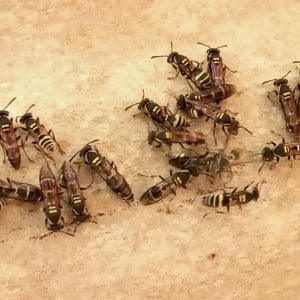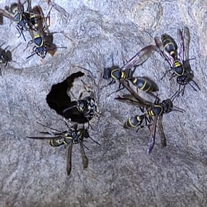 P. occidentalis also has a way of communicating if a potential predator is in the nest. If the nest is rattled or threatened, alarm recruitment occurs through venom and venom-bearing structures in body. The alarm recruitment causes all adult wasps to move out of the nest to the outside to block the entrance and the nest from destruction and intruders. Although the wasps’ wings buzz for under a second when this threat occurs, the recruitment has nothing to do with the wing buzzing. The emergence from the nest is definitely by means of communication because a brief lag occurs between the jarring of the nest to when the wasps all emerge at one. This means that there was some initiating cue. Like the information gained for foraging by odors, during a potential predator threat, alarmed wasps cover the outside of the nest and drag the tip of their gasters, which evokes an odor. This specific odor lets others know that a threat to the colony exists.