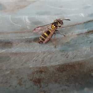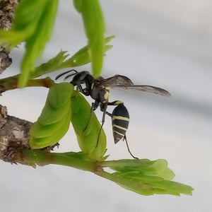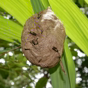 Polybia occidentalis, commonly known as camoati, is a swarm-founding advanced eusocial wasp. Swarm-founding means that a swarm of these wasps find a nesting site and build the nest together. This species can be found in Central and South America. P. occidentalis preys on nectar, insects, and carbohydrate sources, while birds and ants prey on and parasitize them. P. occidentalis workers bite each other to communicate the time to start working.