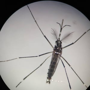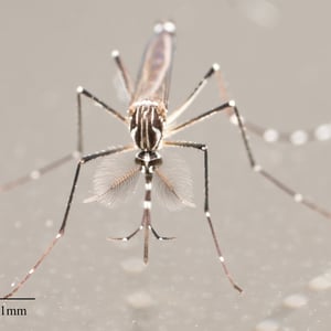 Aedes aegypti is a 4-7 mm long, dark mosquito which can be recognized by white markings on its legs and a marking in the form of a lyre on the upper surface of its thorax. Females are larger than males. Microscopically females possess small palps tipped with silver or white scales, and their antennae have sparse short hairs, whereas those of males are feathery. Aedes aegypti can be mixed up with Aedes albopictus without a magnifying glass: The latter have a white stripe on the top of the mid thorax. Males live off fruit and only the female bites for blood, which she needs to mature her eggs. To find a host, she is attracted to chemical compounds emitted by mammals, including ammonia carbon dioxide lactic acid, and octenol. Scientists at The United States Department of Agriculture (USDA) Agricultural Research Service studied the specific chemical structure of octenol to better understand why this chemical attracts the mosquito to its host and found the mosquito has a preference for "right-handed" (dextrorotatory) octenol molecules. The preference for biting humans is dependent on expression of the odorant receptor AaegOr4. The white eggs are laid separately into water and not together, unlike most other mosquitoes, and soon turn black. The larvae feed on bacteria, grow over a period of weeks until they reach the pupa stage. The lifespan of an adult ''Ae. aegypti'' is two to four weeks depending on conditions, but the eggs can be viable for over a year in a dry state, which allows the mosquito to re-emerge after a cold winter or dry spell.