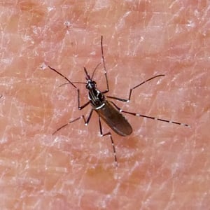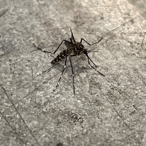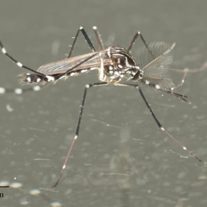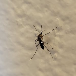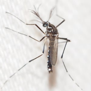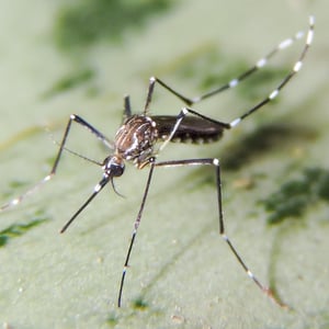 Aedes aegypti, the yellow fever mosquito, is a mosquito that can spread dengue fever, chikungunya, Zika fever, Mayaro and yellow fever viruses, and other disease agents. The mosquito can be recognized by black and white markings on its legs and a marking in the form of a lyre on the upper surface of its thorax. This mosquito originated in Africa, but is now found in tropical, subtropical and temperate regions throughout the world.