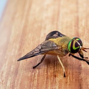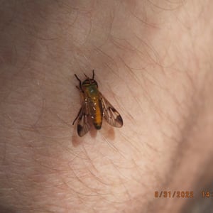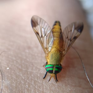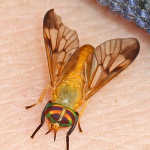 It is notorious for its propensity to inflict painful bites on people, having been described as the most aggressive fly species in Florida. The female feeds on blood to develop eggs, and is most active in the summer and early autumn during daylight hours, especially in the late afternoon and on overcast days. Flies can even venture indoors. Its presence affects recreational swimming, boating and fishing from April to June. Yellow fly bites leave itchy welts. DEET is the most useful insect repellent, though may not prevent bites if the yellow flies are in large numbers. In this case, physical barriers such as gloves and headnets are the only truly effective protection.