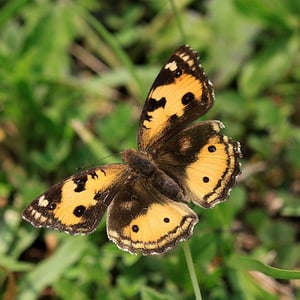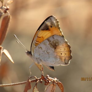Junonia hierta, the yellow pansy, is a species of nymphalid butterfly found in the Palaeotropics. It is usually seen in open scrub and grassland habitats.