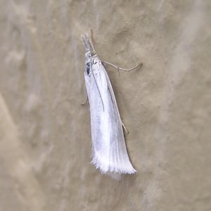 Crambus perlella is a species of moth of the family Crambidae. It is found in Europe and east across the Palearctic. The wingspan is 19–28 mm. The face is rather prominent. Forewings very shining whitish, often ochreous -tinged ; veins and dorsal area often more or less broadly suffused with dark grey ; cilia shining white. Hindwings are grey, sometimes much suffused with ochreous -whitish, sometimes posteriorly dark grey. The larva is light greygreenish or greyish-ochreous ; dorsal line darker ; spots brown ;head pale yellow -brown, darker-marked The moth flies from July to August depending on the location. The larvae feed on various grasses. Adults feed on the nectar of Leucanthemum species.