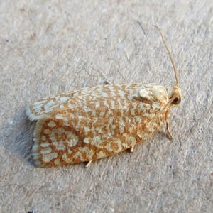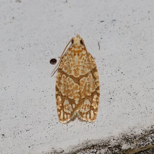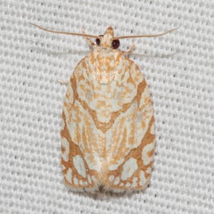 Argyrotaenia quercifoliana, the yellow-winged oak leafroller moth, is a species of moth of the family Tortricidae. It is found in eastern North America. The wingspan is 16–24 mm. Adults have pale yellowish-cream forewings with golden-brown speckling and brown, oblique lines. There is a hollow circle pattern in the subterminal area. The hindwings are white with yellow shading in the lower half. Adults are on wing from May to July. The larvae feed on Hamamelis, Quercus (oak), and possibly Rhamnus (buckthorn) species.